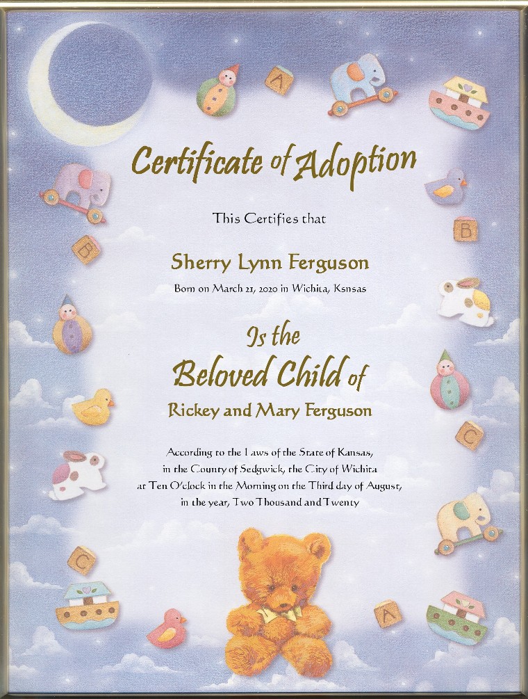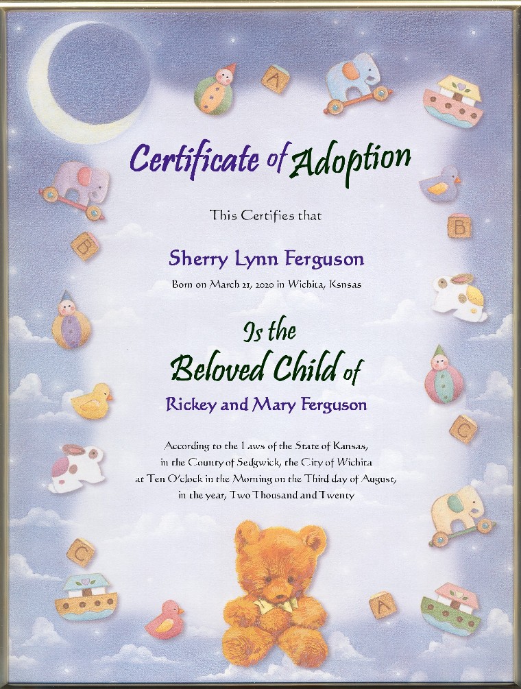 This 8½ x 11 inch, Custom Printed, Adoption Certificate has a