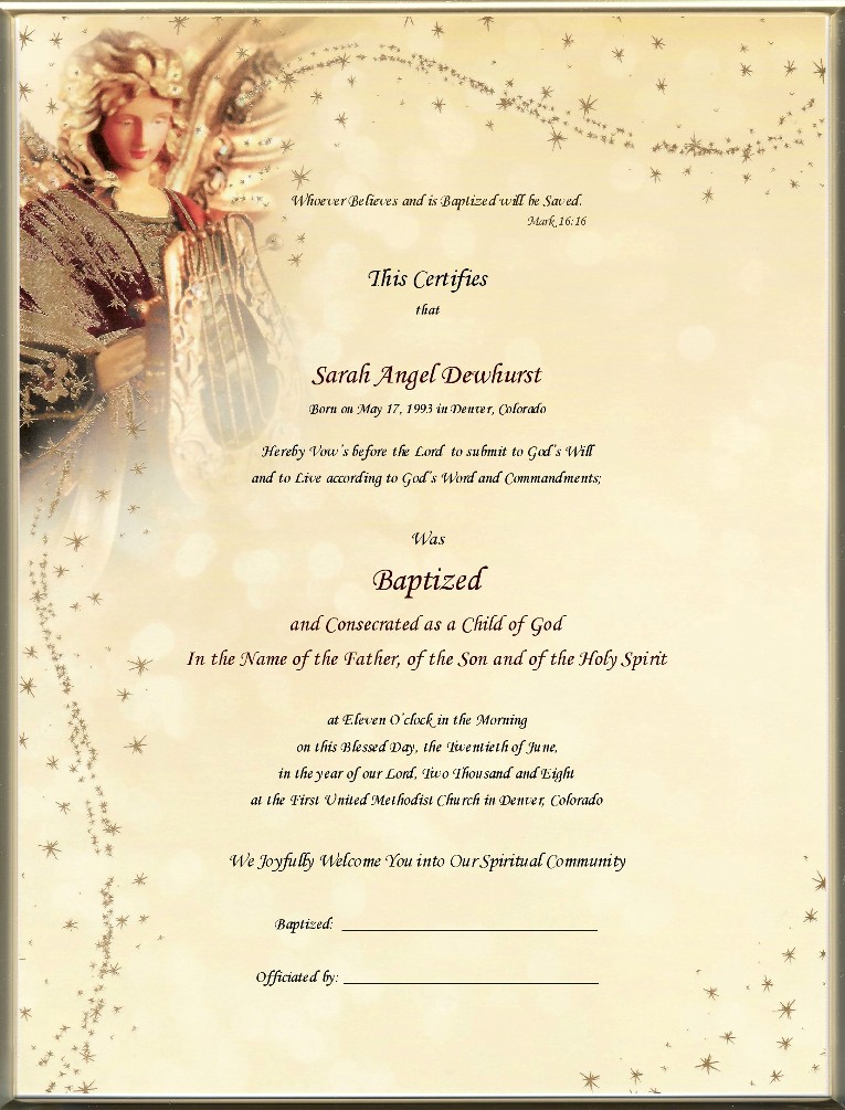 NEW for your Baptism! Now you can get a Unique, One-of-A-Kind, Keepsake Baptism Certificate in Twenty-first Century style.