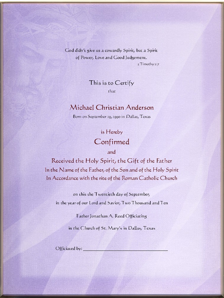 NEW for Loving Parents! Now you can get a Unique, One-of-A-Kind, Keepsake Catholic Confirmation Certificate for your Child in Twenty-first Century style.